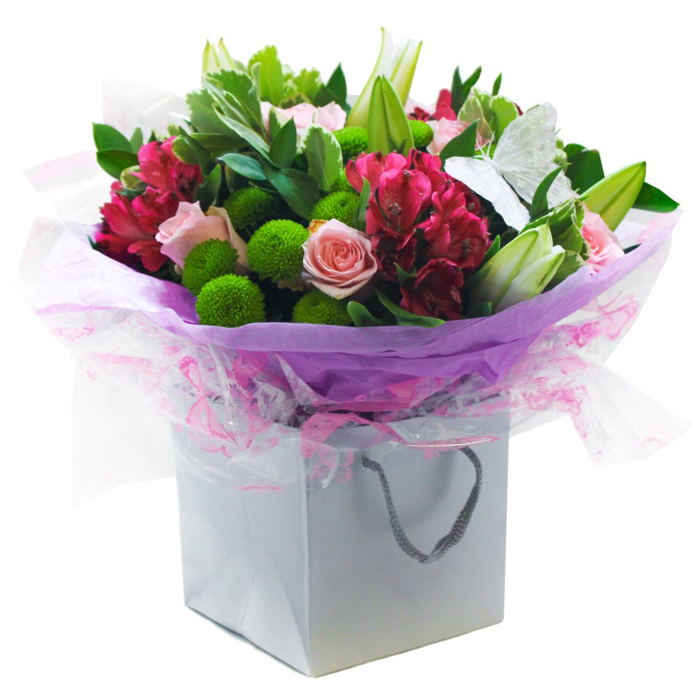 Flowers may vary. This is a stock photo so we try to ensure likeness, However we cannot specify flowers used. Hand ties in water are our most popular item as they are displayed into a bubble of water and presented in a box or bag, ready to display at minimum fuss and maximum effect. All blooms are handpicked with care and delivered with a smile. Our staff try to ensure the customers needs are met. If any special instructions are needed please leave a comment under the special instructions box upon ordering, this includes any allergies / pets so we can ensure they are met to the best of our ability. If you require same day delivery please order before 12pm, depending on stock levels the item may vary.